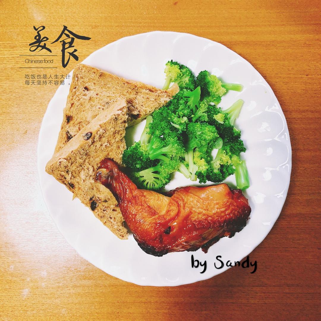 #健身食谱#烤鸡腿,全麦面包,煮西兰花