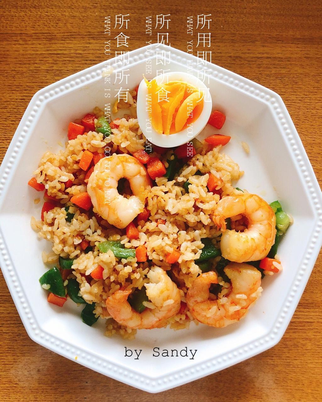 虾仁青椒胡萝卜炒蛋,煮蛋半个