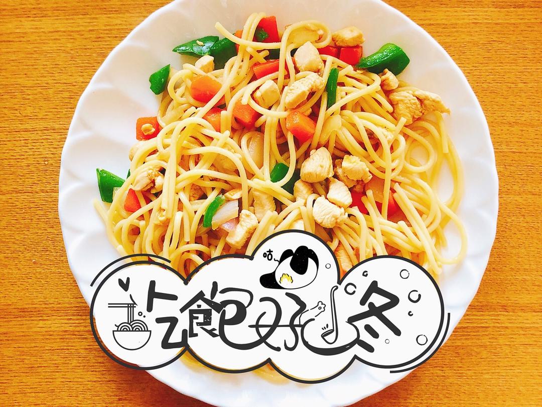 意面,青椒,胡萝卜,鸡胸肉,洋葱