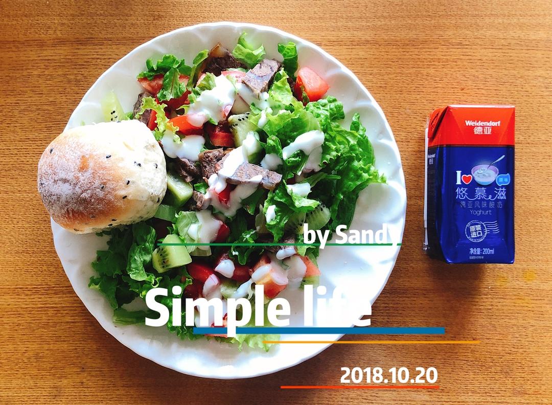 #健身食谱#生菜,酱牛肉,西红柿,猕猴桃,邻居送的爱心芝麻面包