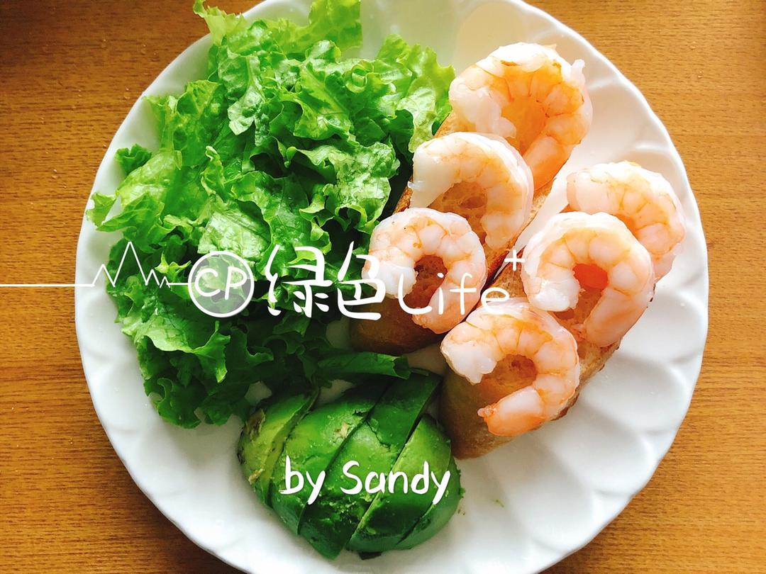 原味法棍切片,煮虾仁,生菜,牛油果半个