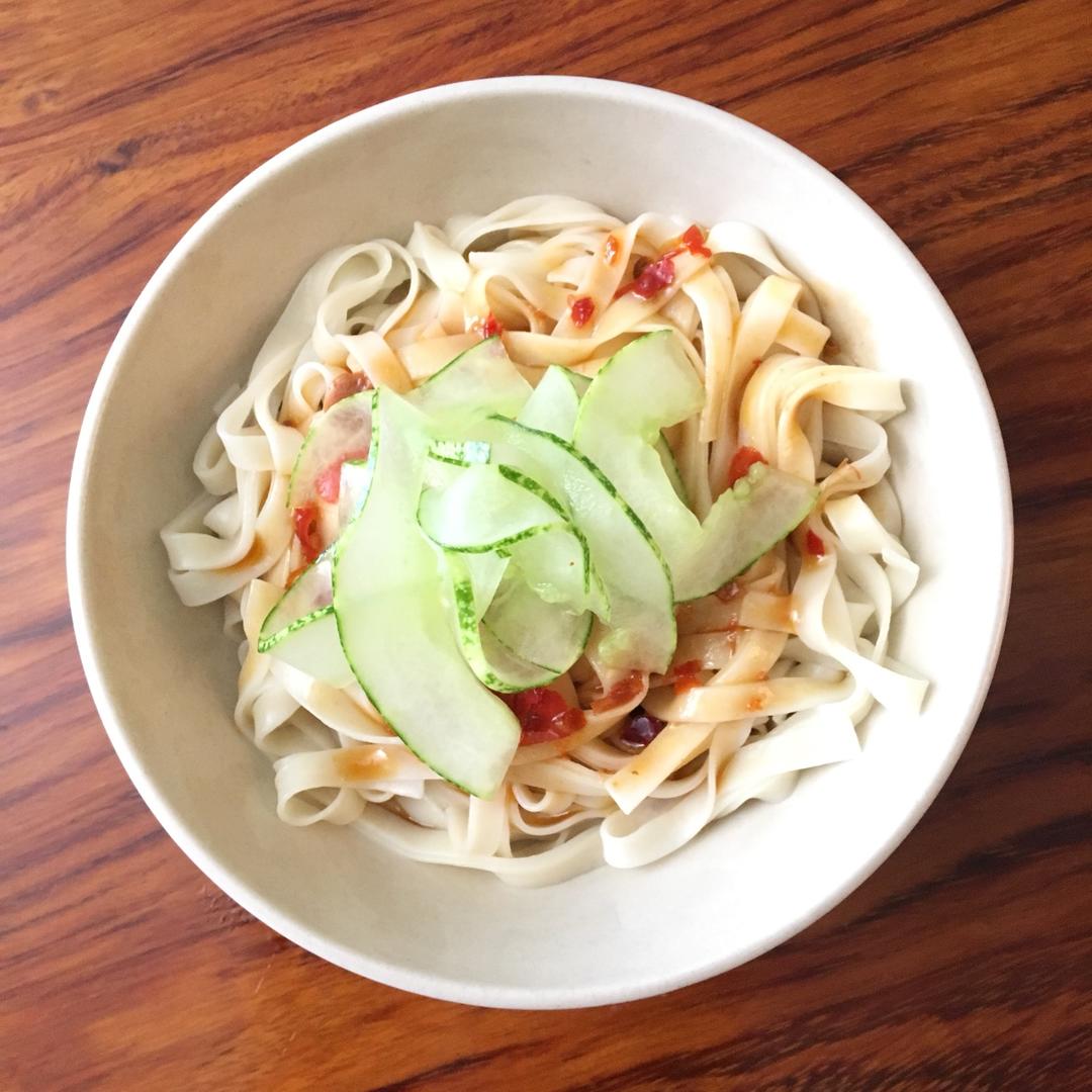 家婆种的黄瓜稍微放醋盐糖腌一下,配上过了冷水的面条和调制过的酱料,清爽好吃极了。