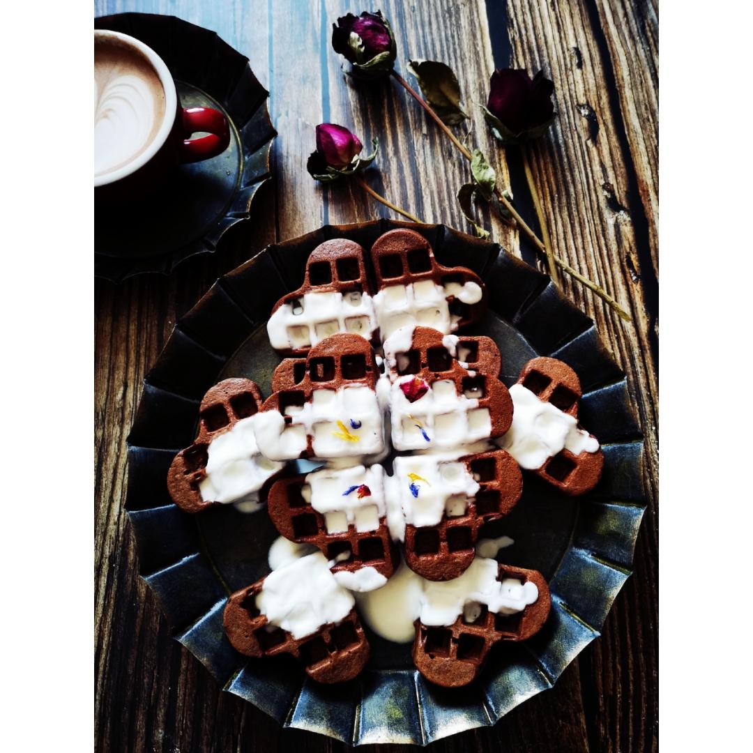 母亲节快乐🌹,给妈妈烙了心形华夫饼,还想推颗心又……🙈,哈哈哈反正都是小...