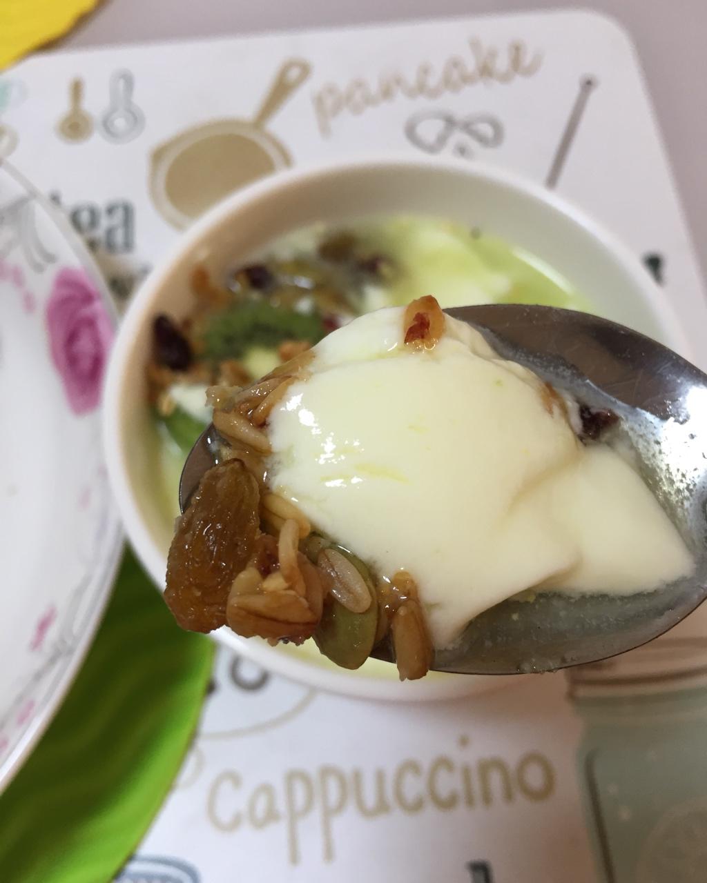 新鲜出炉的酸奶,温润细腻,配上香脆嚼劲的烤燕麦,粗中带细,妙了!吃零食的感觉真好!😉