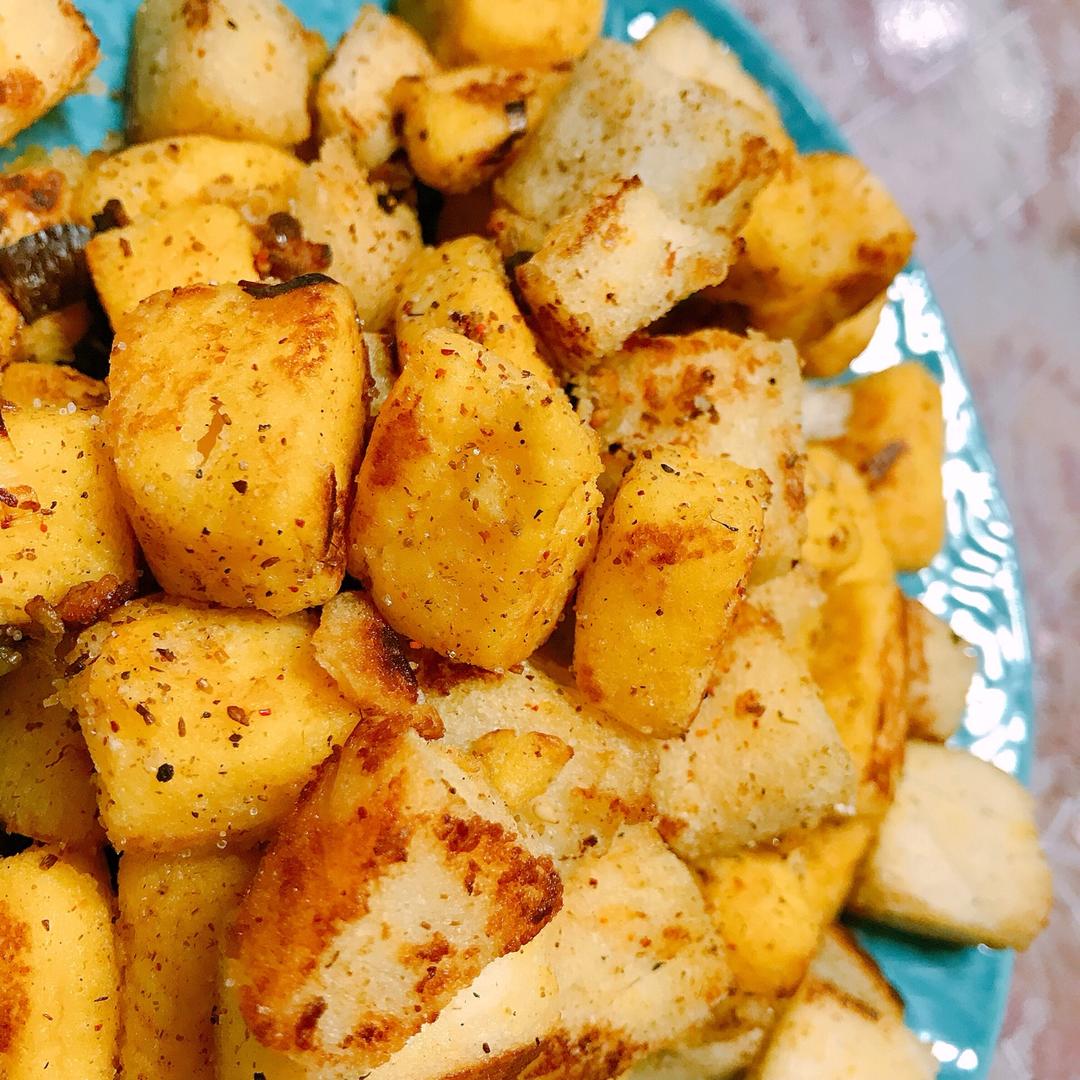 好吃!自己加了辣椒粉、黑胡椒粉、椒盐,更有味道了!喜欢吃硬点酥酥的口感的宝贝可以试试不裹蛋液哦😏 #早餐•2018年2月...