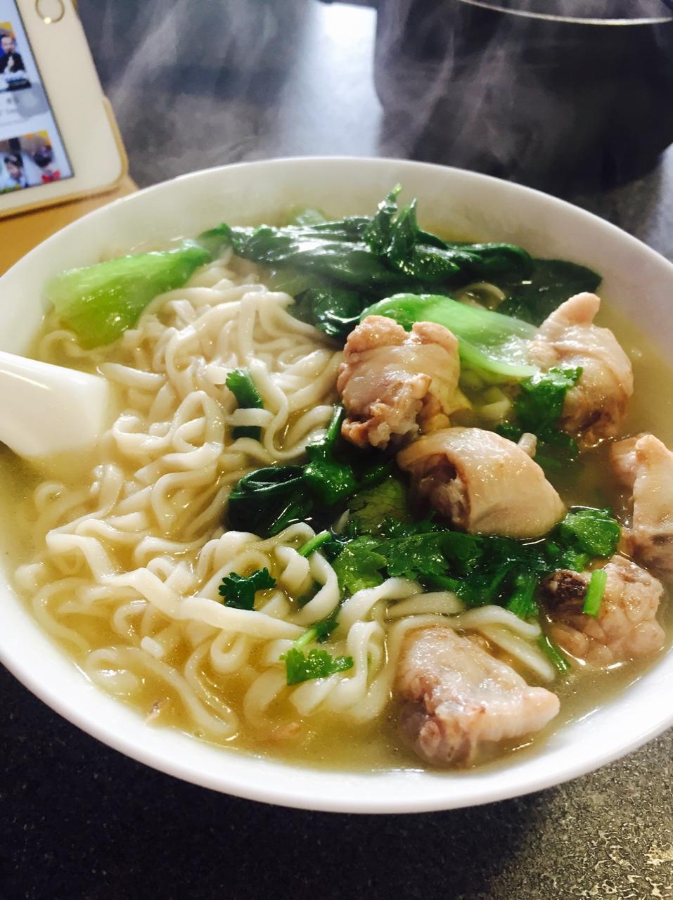 昨天做了白斩鸡,留下的汤各种喝喝喝,今天做了碗鸡汤面😋