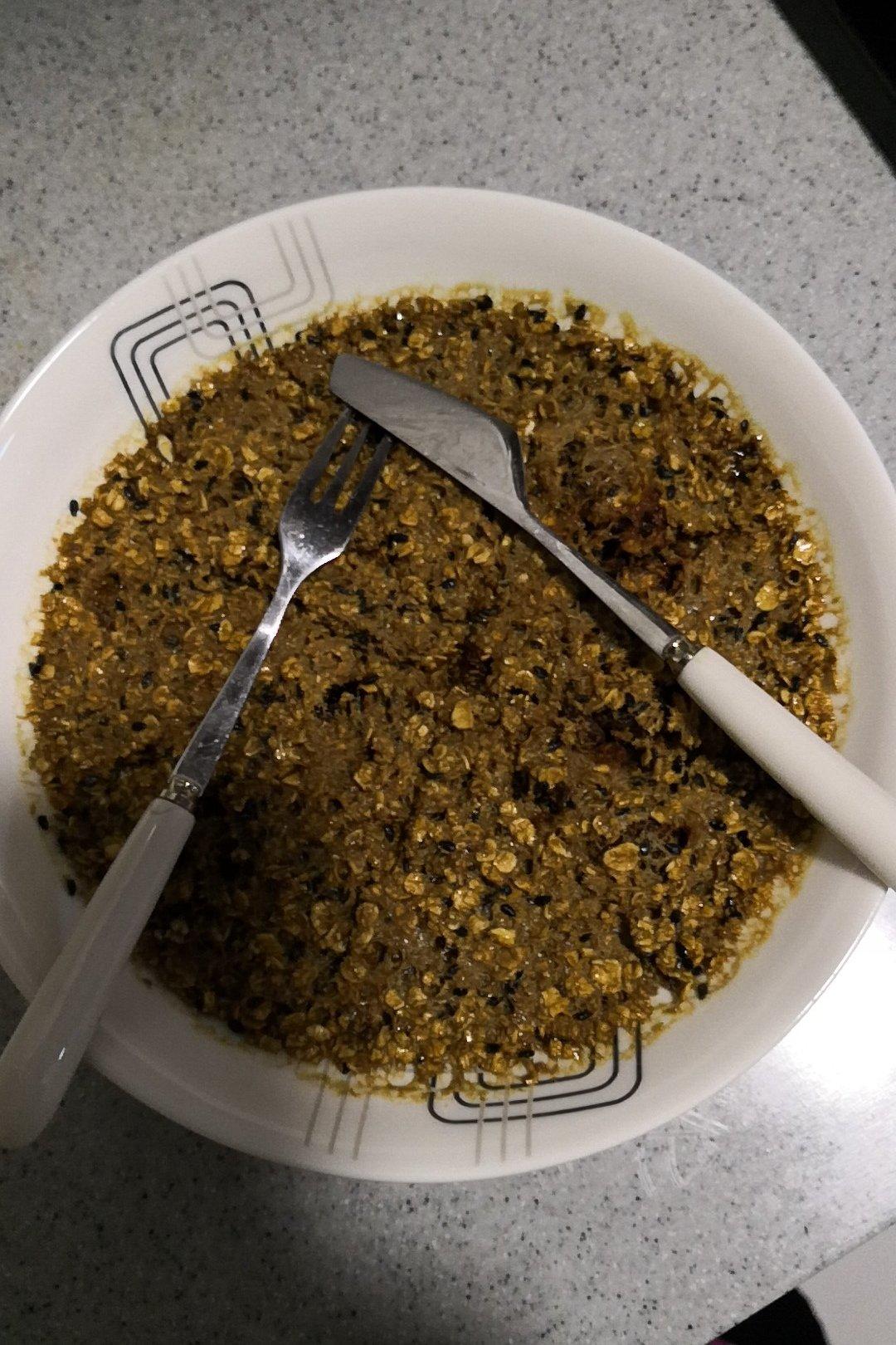 燕麦饼干,看着黑乎乎的不好看,其实味道不错。尝试加了点葡萄干,不好,因为会发酸。