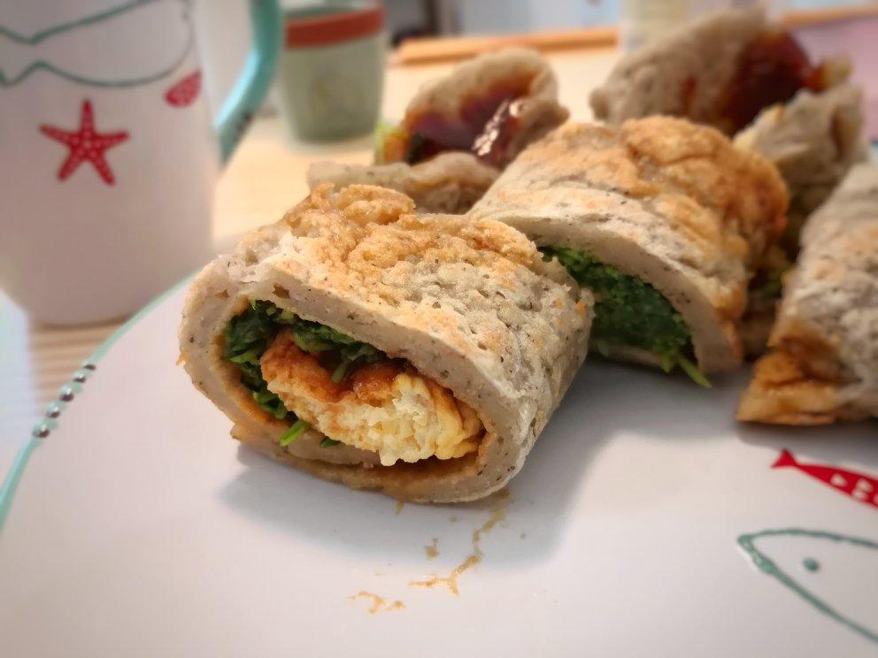 包了点苗菜卷起来。(๑❛ᴗ❛๑)其实是因为豆苗太长嚼不烂,切成了一段...