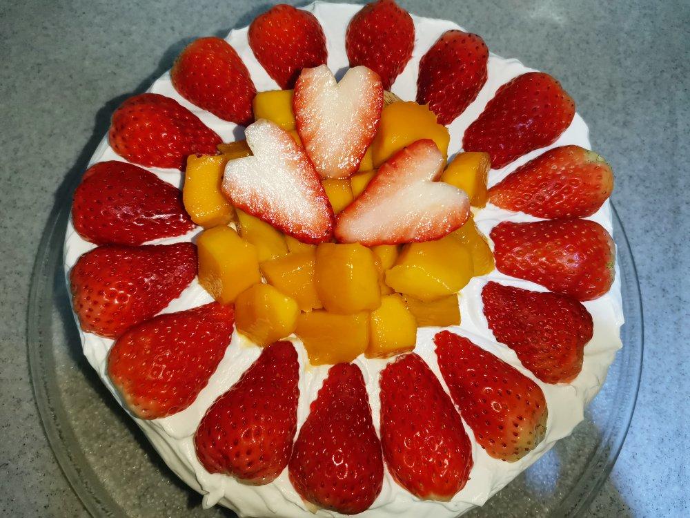 为老妈69岁生日做的蛋糕,8寸超低糖的椰风🥥草莓🍓芒果🥭黑米芝麻裸蛋糕。
