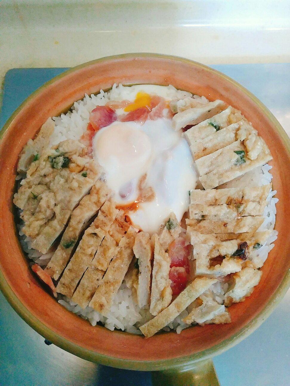 窝蛋鱼饼腊肠腊鸭煲仔饭