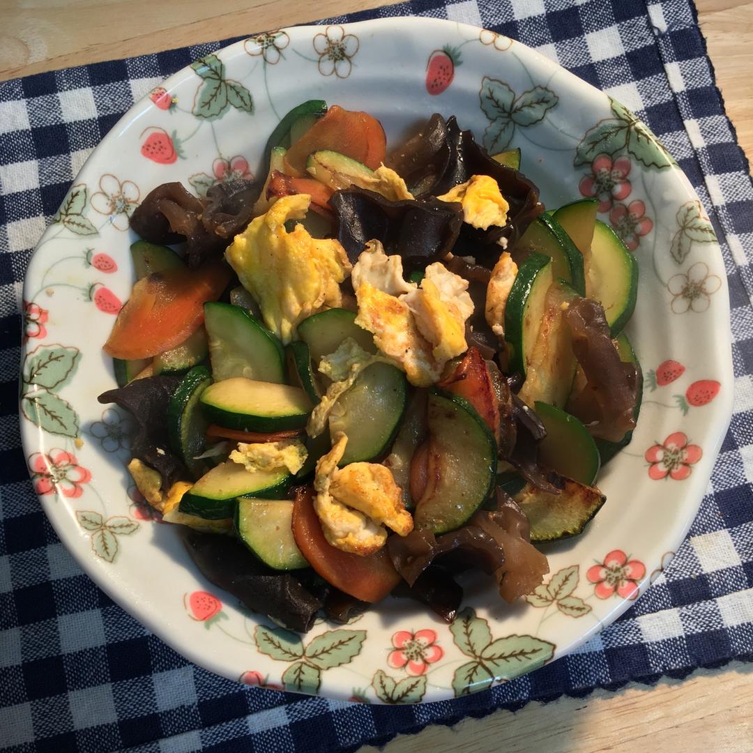 【胡萝卜木耳角瓜炒蛋】(123)