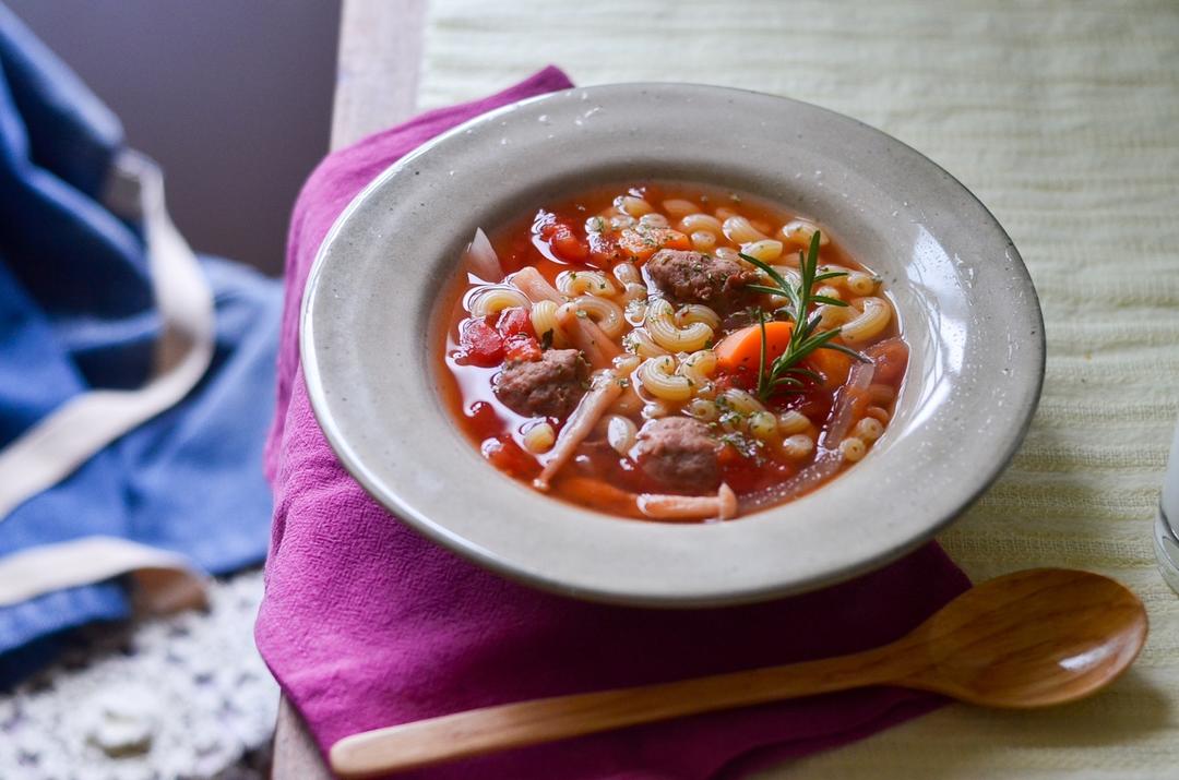 吃一碗热热的番茄肉丸小弯面