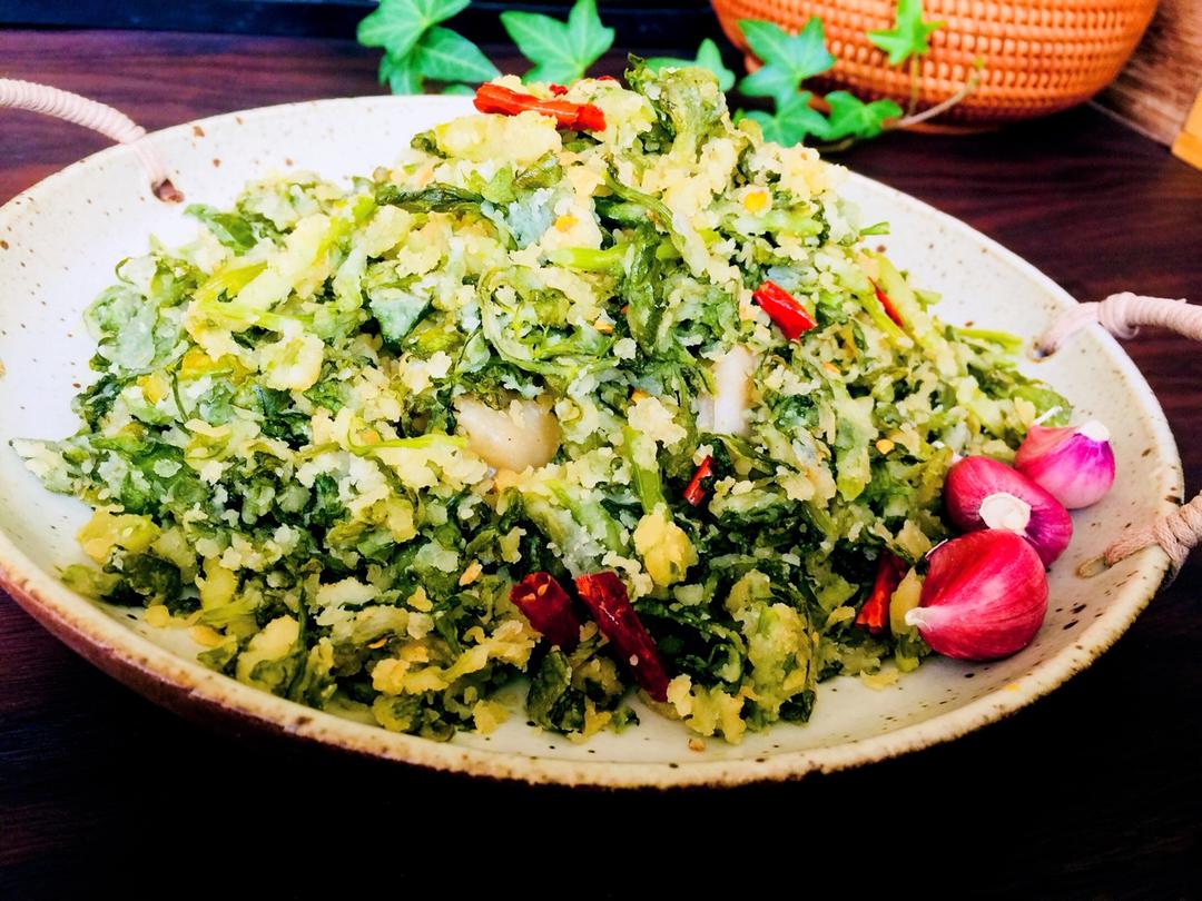 粉蒸芹菜叶 再来碗速冲奶茶