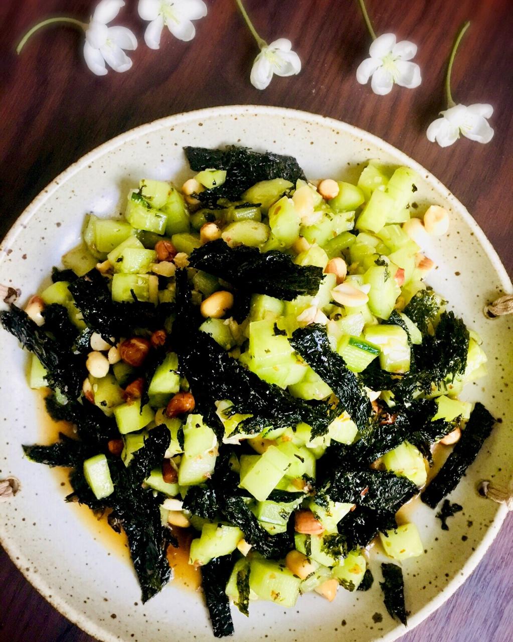 凉拌紫菜花生黄瓜 瓜皮和面做了拉面