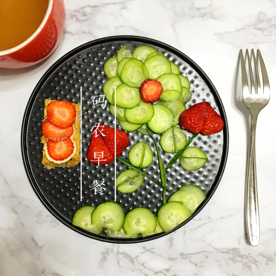 食材:🍞全麦吐司(鸡蛋➕水果叠罗汉)➕🥒黄瓜➕🍓草莓