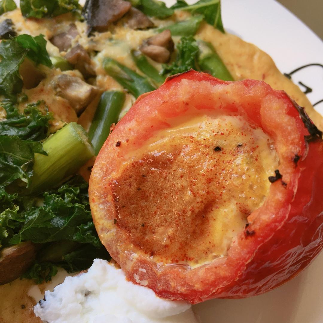 昨天的 番茄鸡蛋杯/kale omelet/fage酸奶