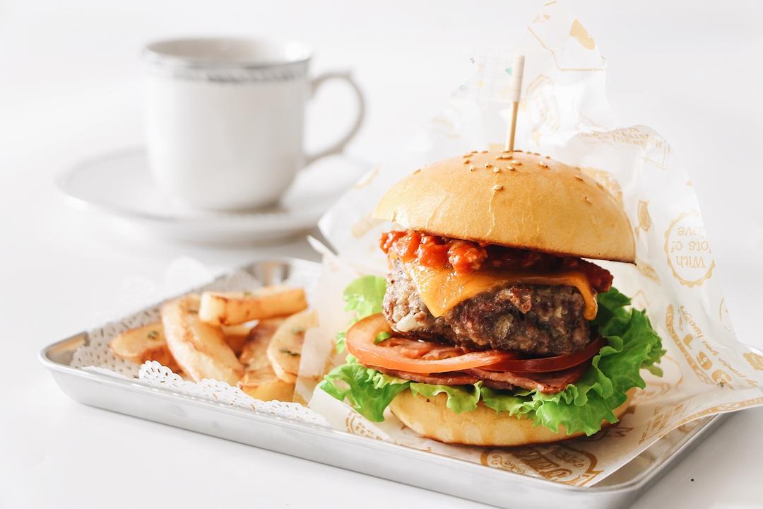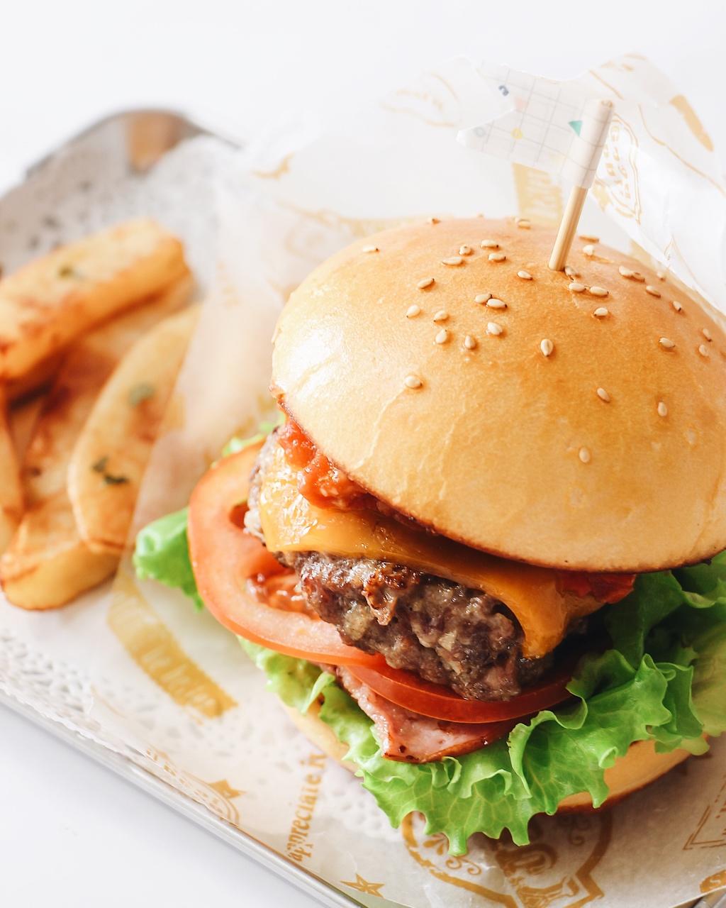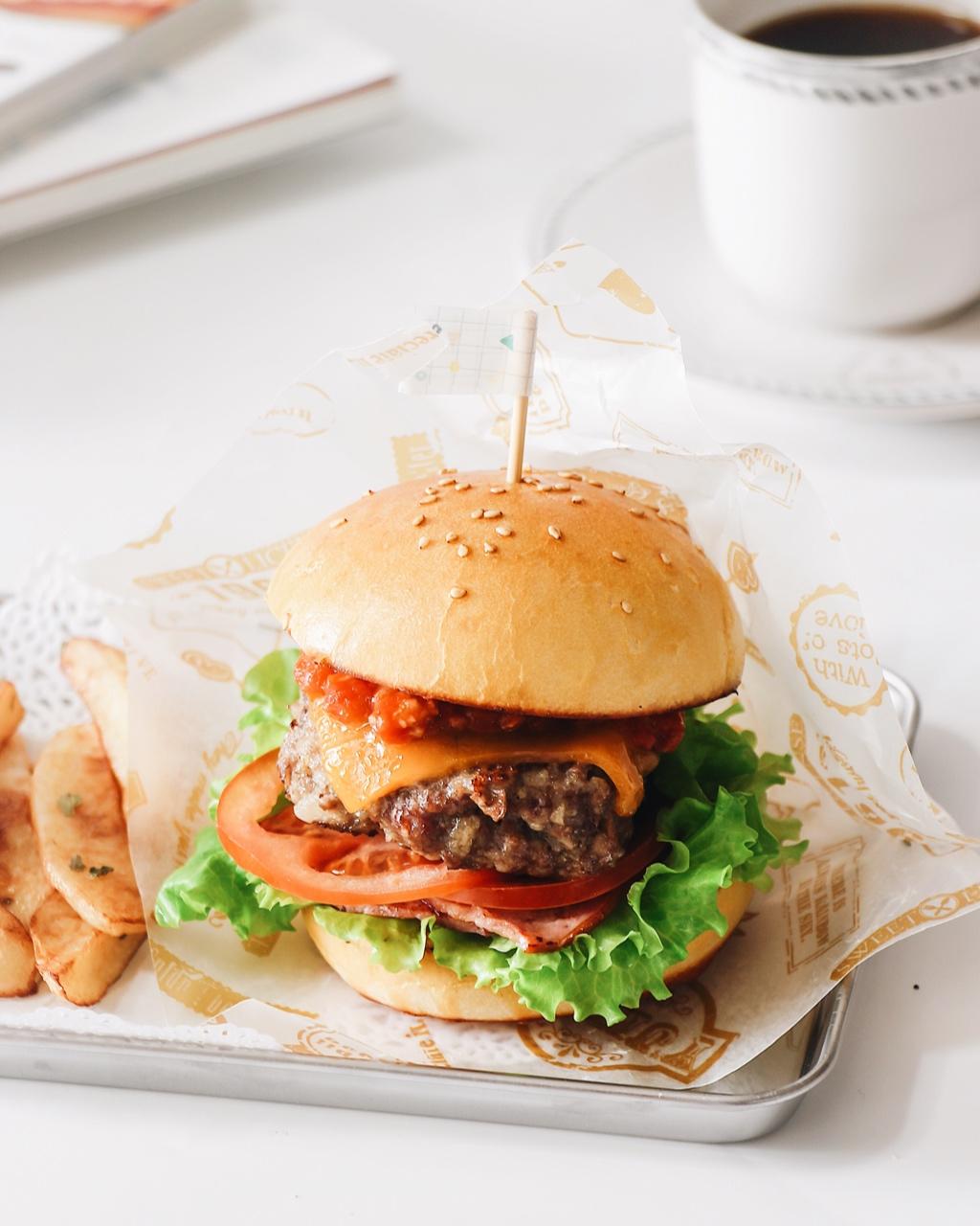 生菜+培根+西红柿+汉堡肉+芝士+肉酱👏🏻