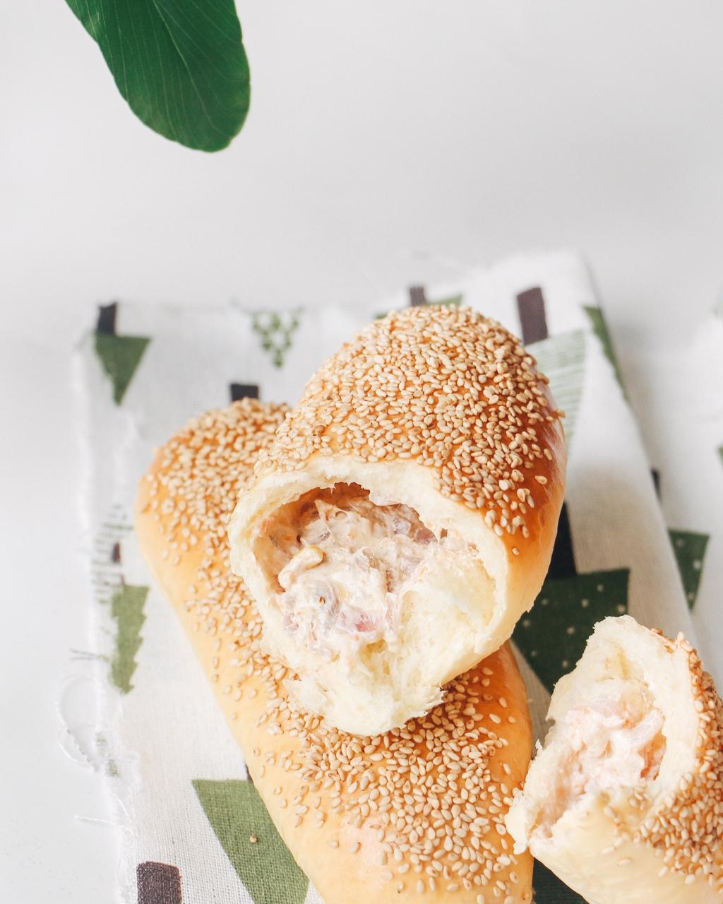 做这个面包的初衷就是想把我用了半罐的沙拉酱浸金枪鱼罐头用完