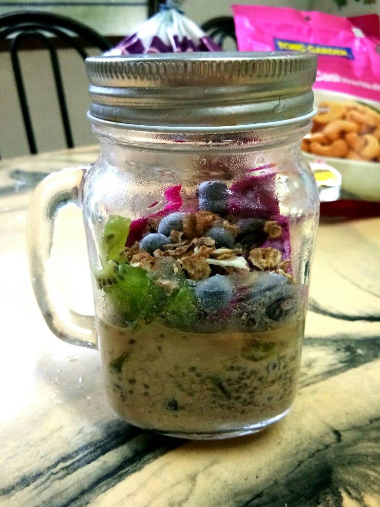 昨天晚上做的莓果咖啡隔夜燕麦。放了香草精和肉桂粉超香😻不过...