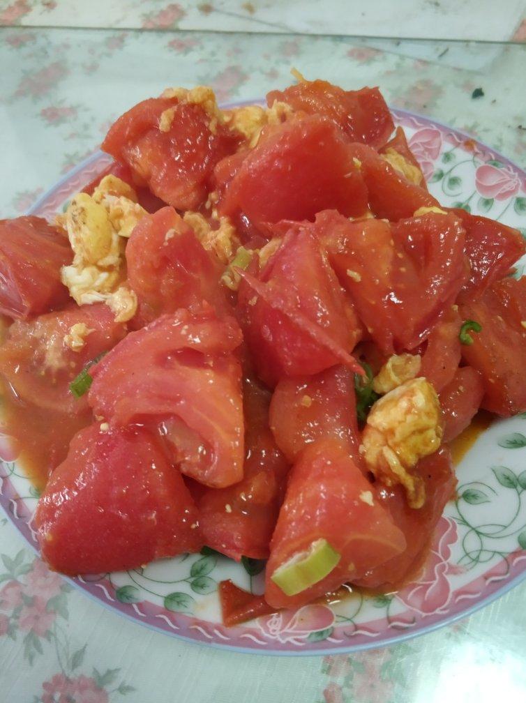 西红柿炒鸡蛋,从App中学的,鸡蛋里加入少量料酒和水,口感的确不错,家里做菜着急...
