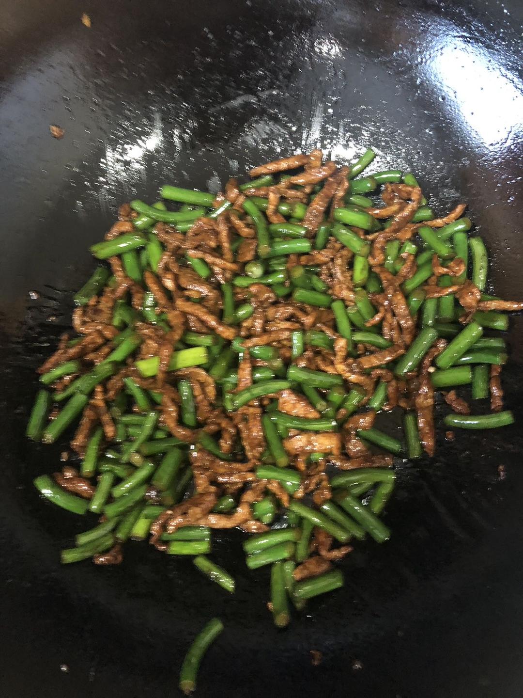 蒜苔炒肉丝。