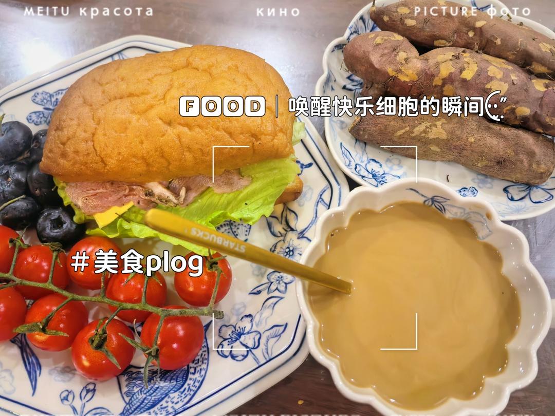 烤了几个红薯再来个恰巴塔和拿铁,美美的早餐!