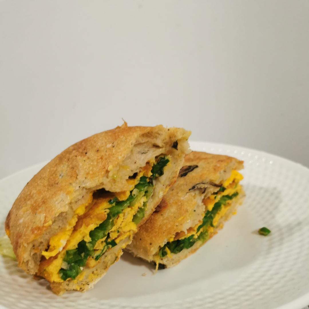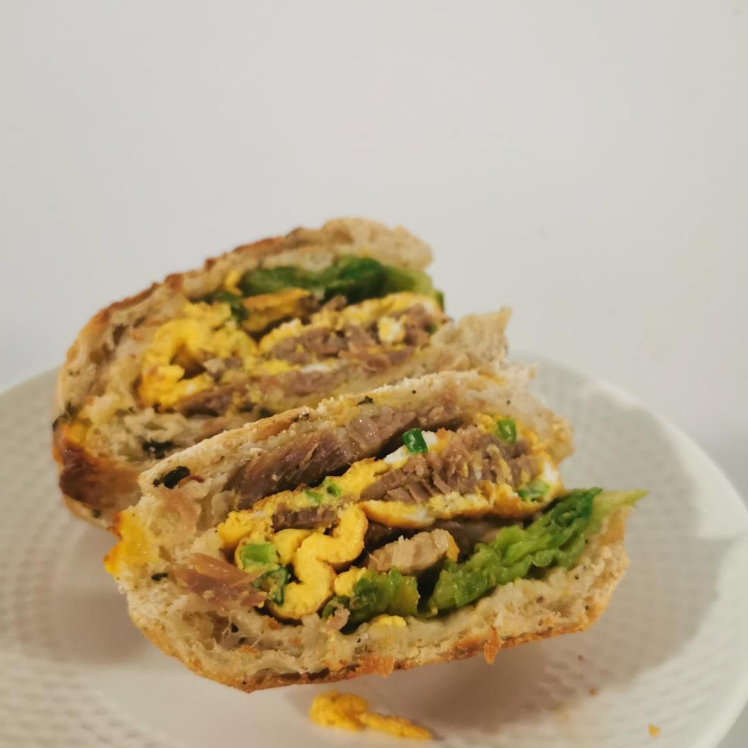 香葱滑蛋+五香牛腱+生菜+奥乐齐黑松露菌菇恰巴塔