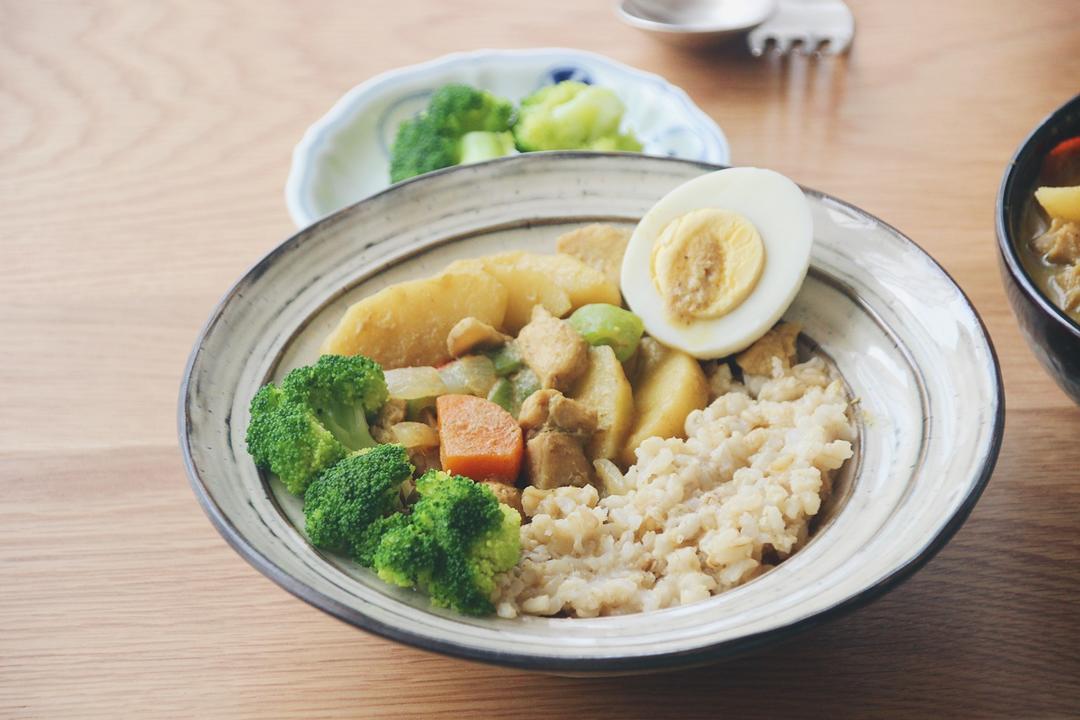 咖喱鸡肉杂粮饭。