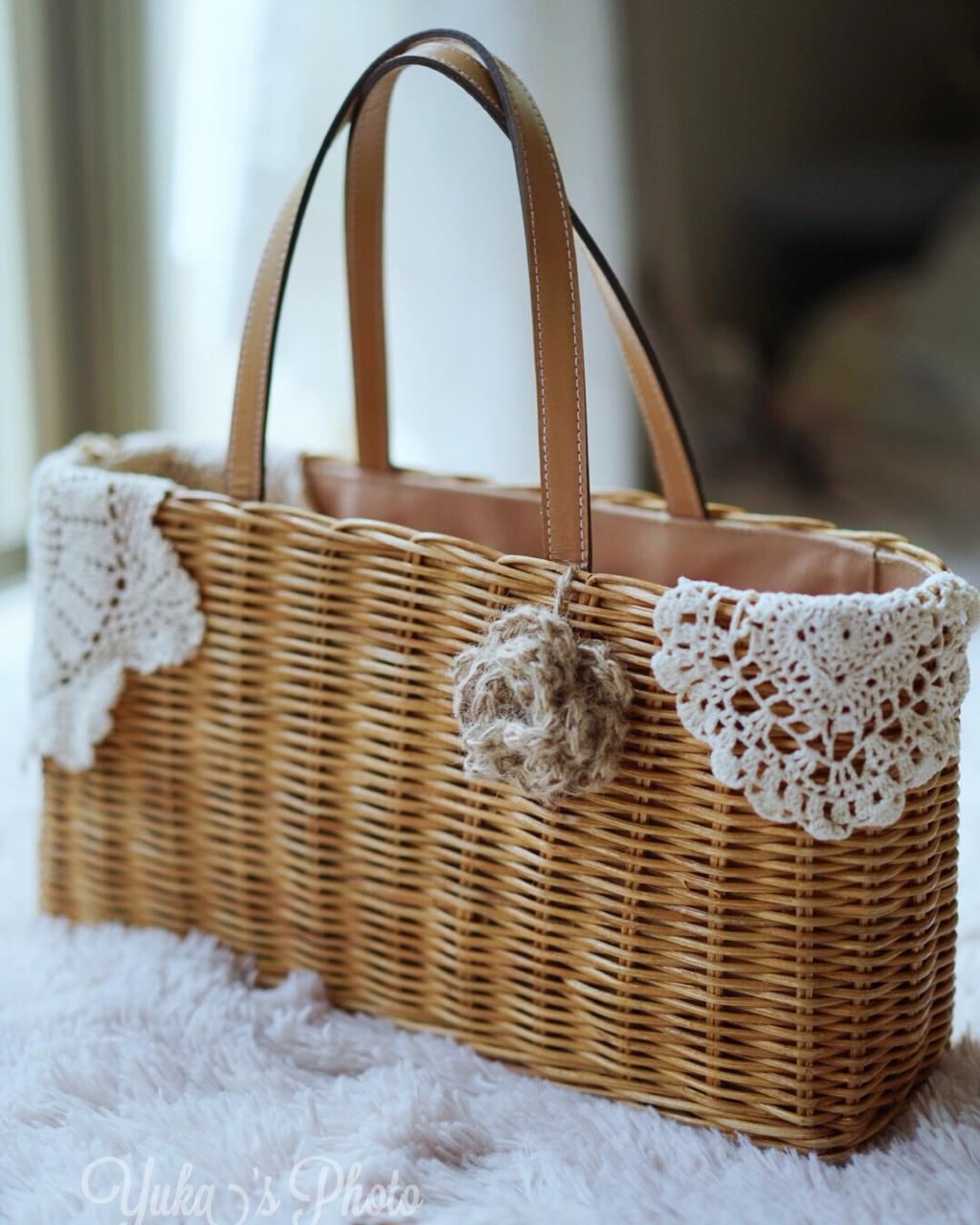 🌿旧物改造1~3、6~9:原本是一只平淡无奇的藤编包,自己加了手钩的花朵和蕾丝,立马有了森女系包包的感觉,...