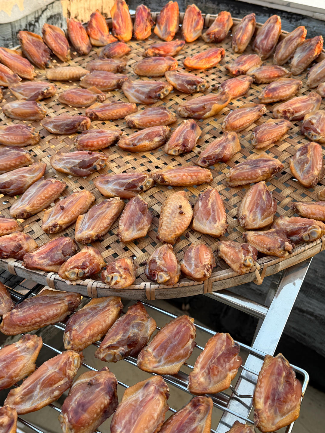 鸡翅晒了三天.今天吃很不错.一丢花椒味~没有太干.皮软糯