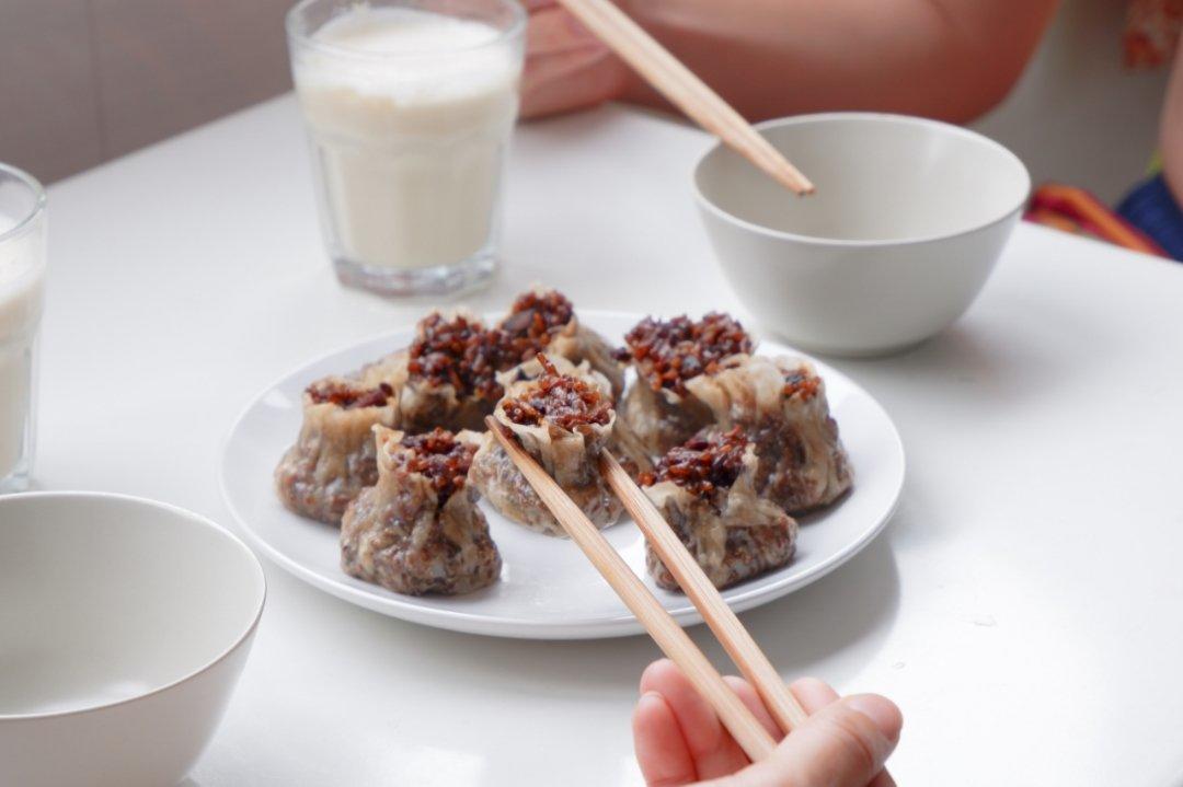 前天包粽子剩下的糯米包成烧麦刚刚好