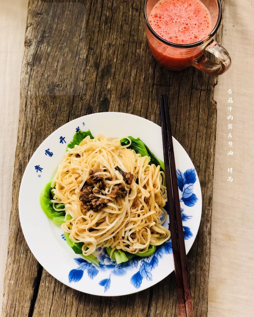 葱油&香菇牛肉酱 拌面,半夜饿得睡不着,早上一大份吃完了😘😌😌