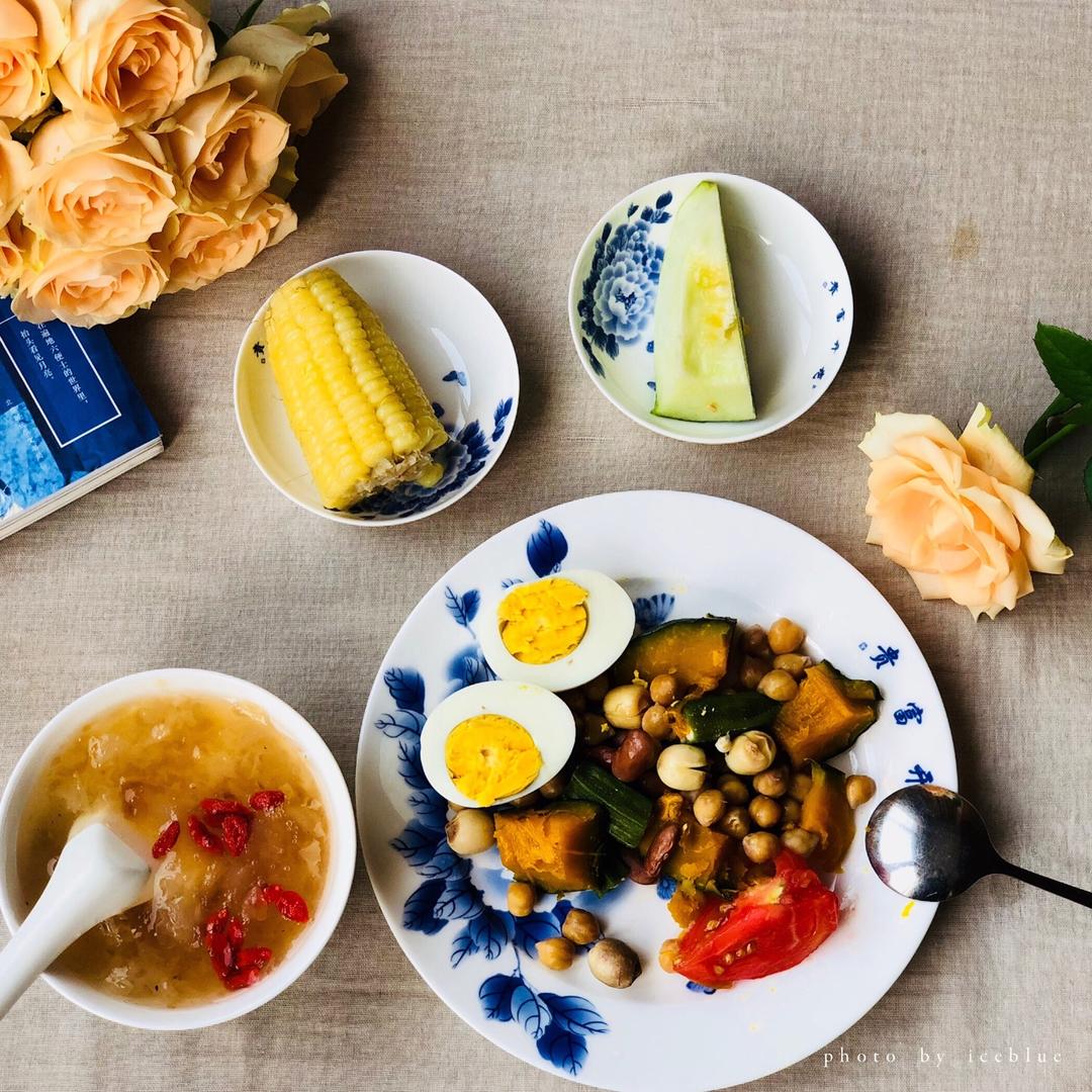 紫米馒头,水蜜桃银耳羹