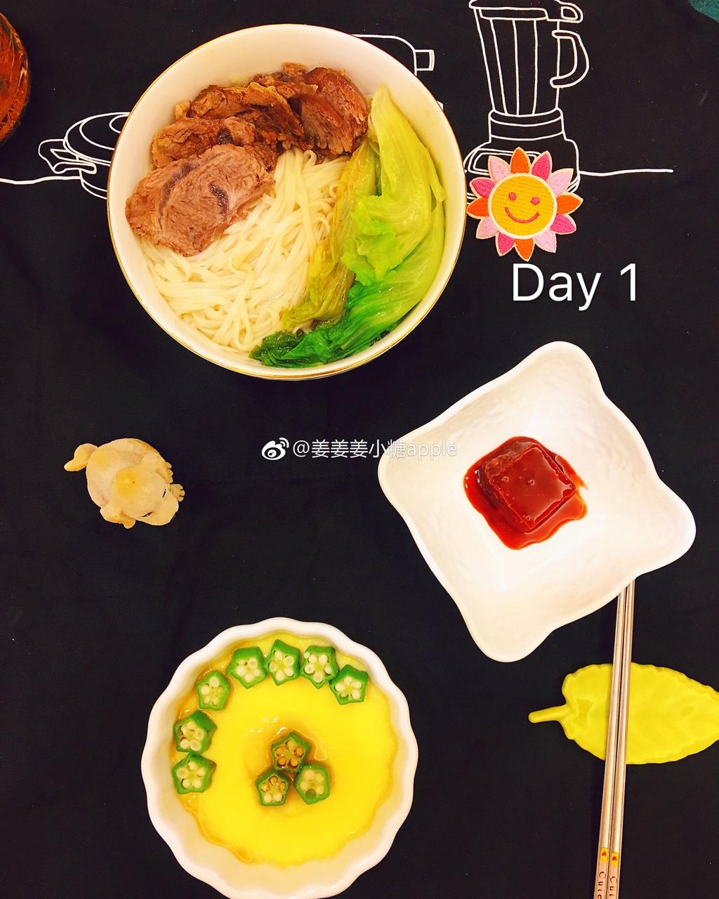 周一,早上好!今日早餐:牛肉面,蒸鸡蛋,腐乳