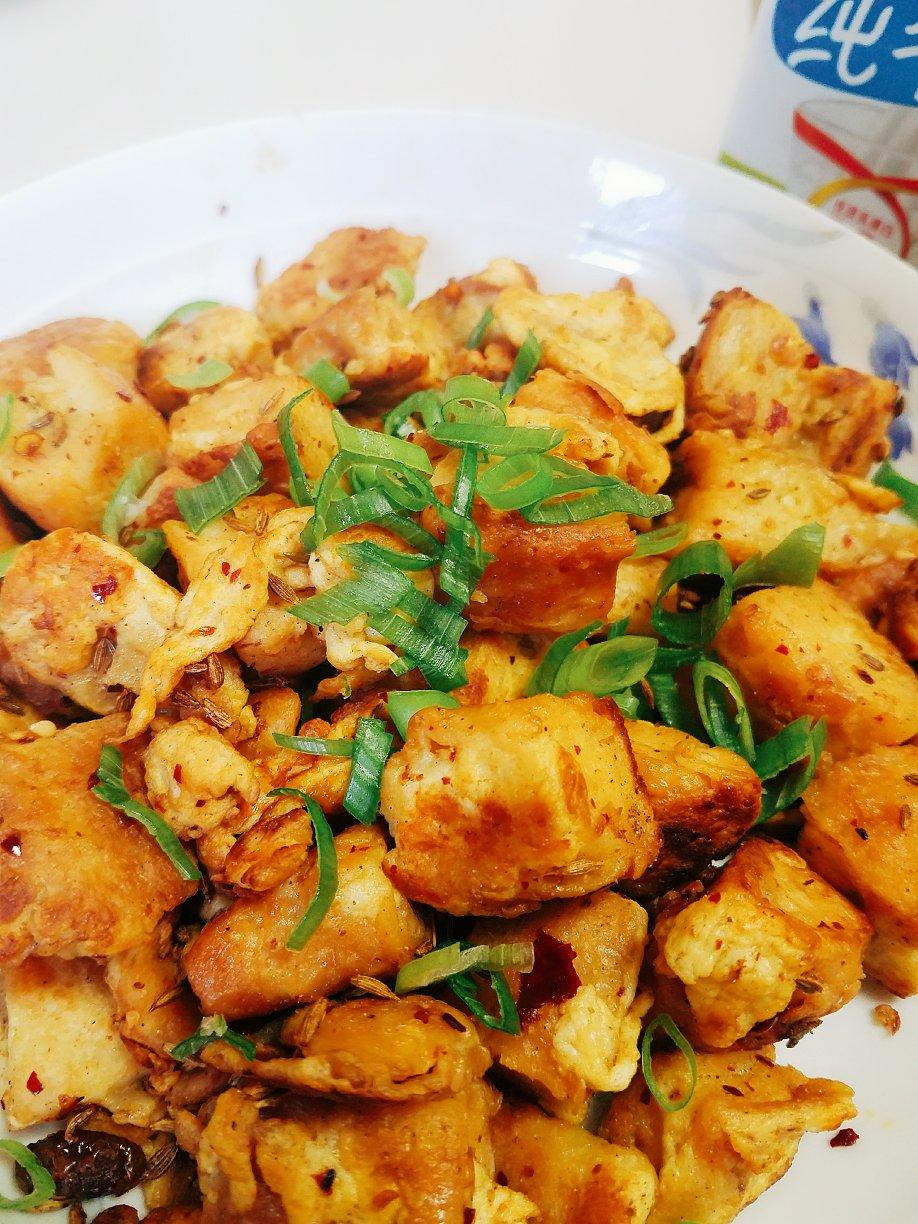 #孜然蛋炒饼,加了半勺老干妈和一些黑胡椒粉味道很棒哦#