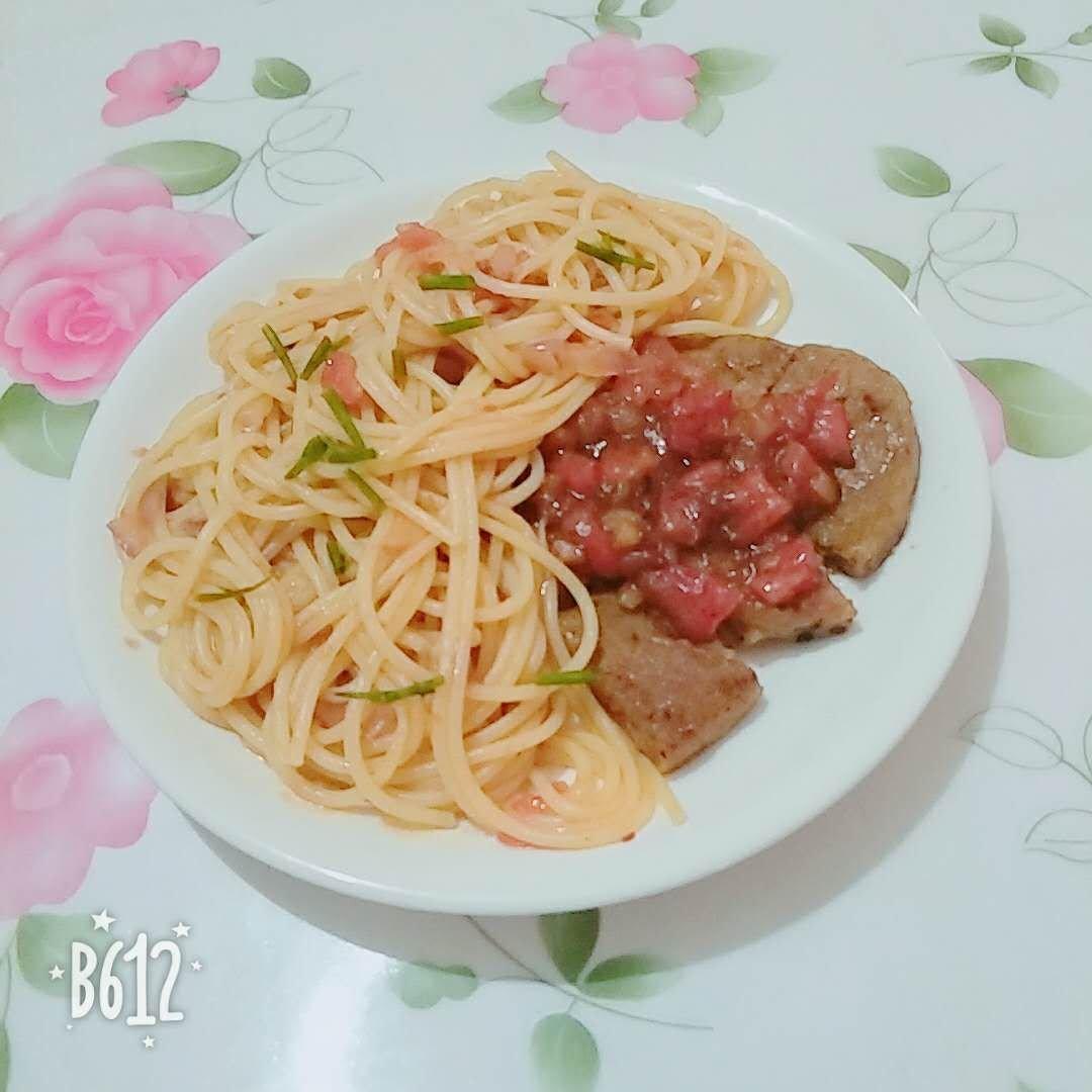 今日份晚餐 意面➕黑椒牛排
