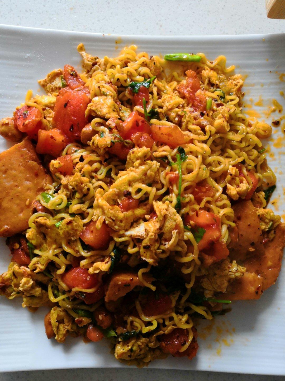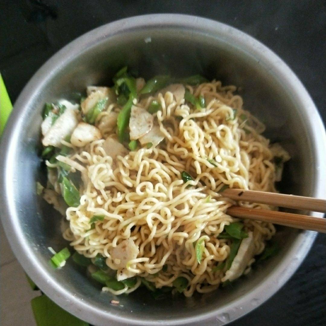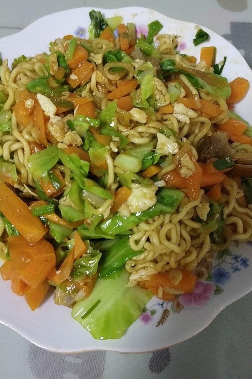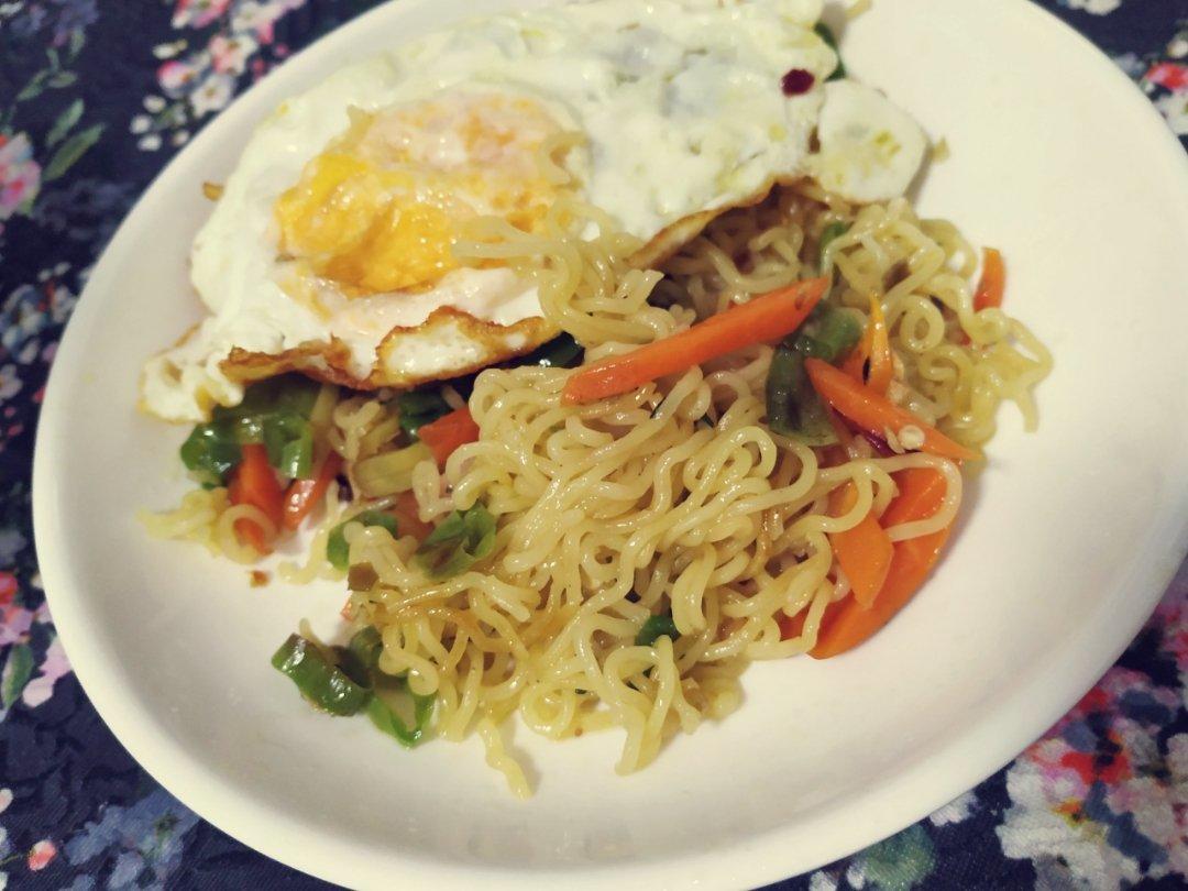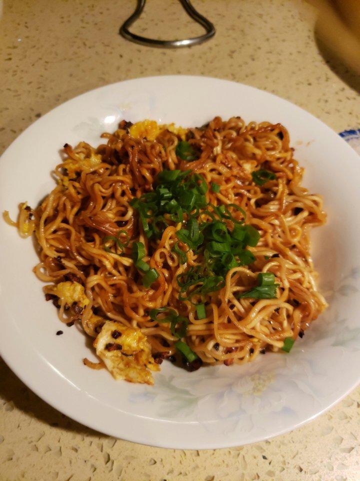 第一次炒方便面,没有小米椒和青菜,凑合吃吧[偷笑]大半夜饿了解馋足够了😄方法简介明了,很棒