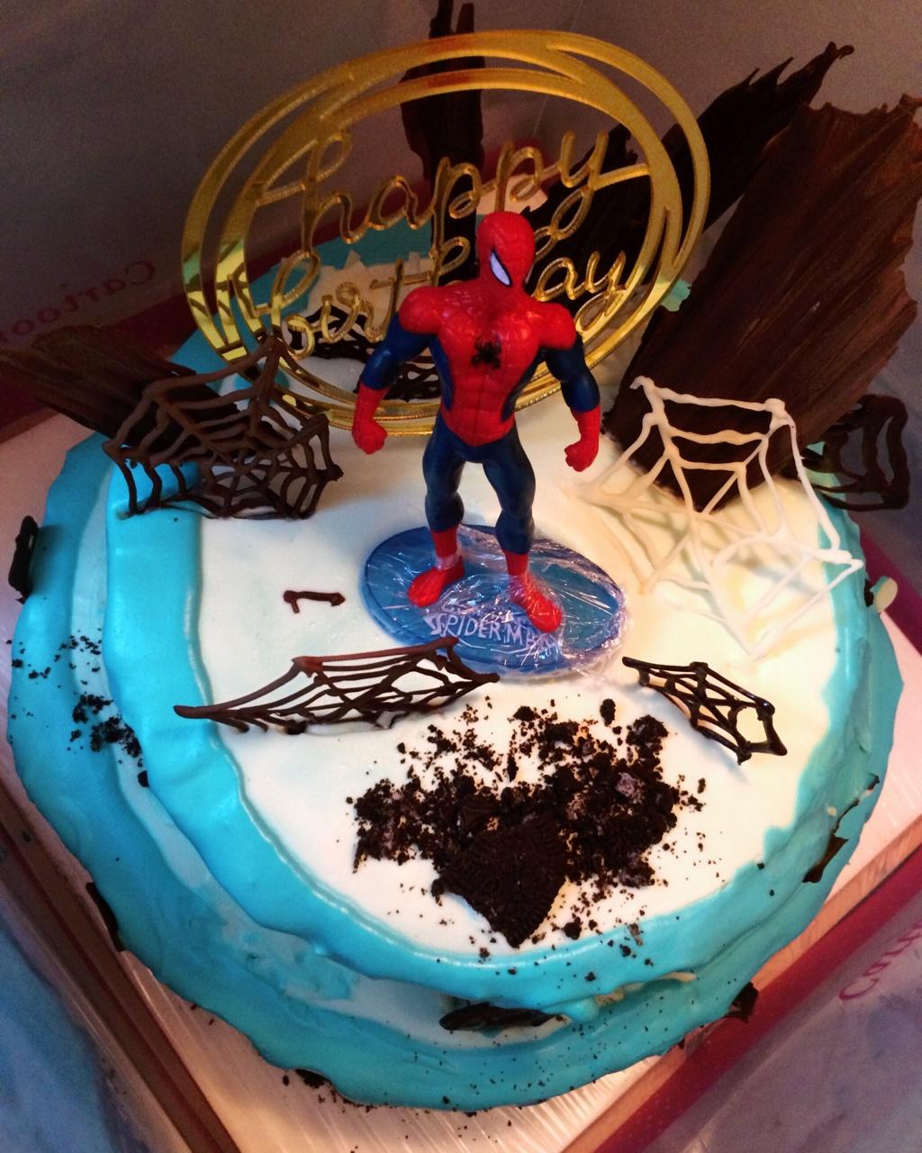 双层蜘蛛侠蛋糕,夏天奶油伤不起,巧克力也被融化的节奏😂