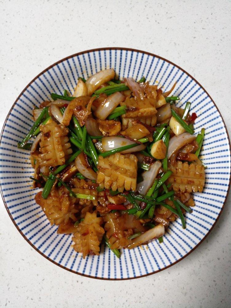 爆炒鱿鱼花+凉拌莴笋片+番茄蛋汤