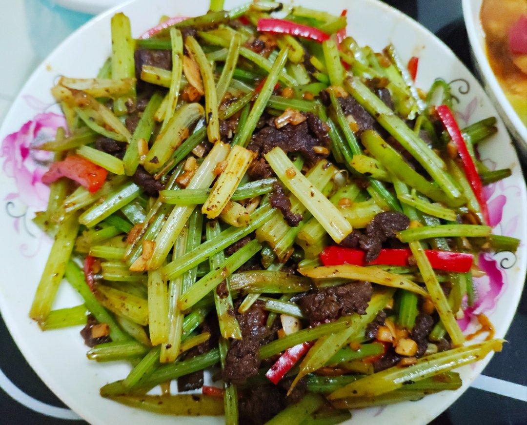 芹菜炒牛肉,龙博在,就有饭吃。