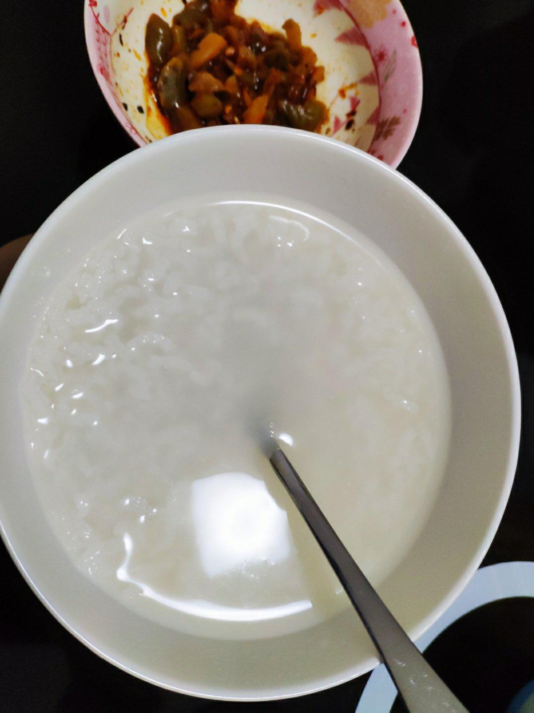 说好的晚上要喝白米清汤稀饭,龙博又给我吃肉,还有软面的土豆,好吃好吃😍