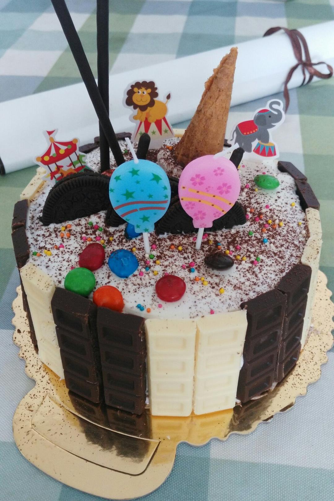 小丫头生日快乐巧克力围边没挤成功😓😓偷个懒,就用巧克力块😓
