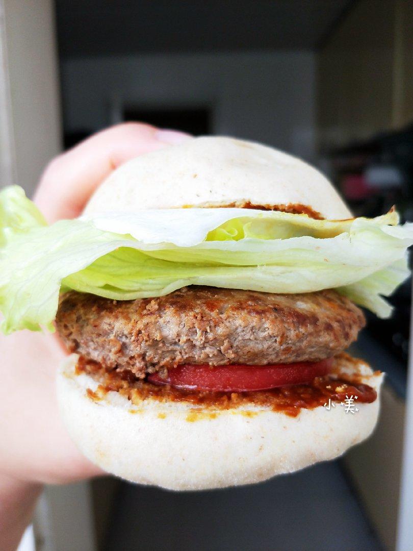哈哈,昨天煎了牛肉饼,蒸了馒头,正好来个汉堡当早餐😘