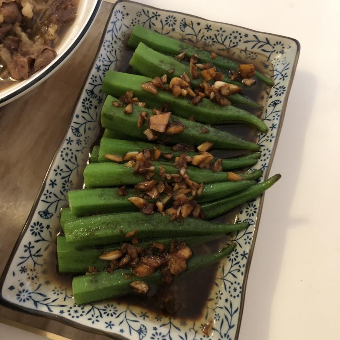 10.1买菜看到秋葵就买了 没做过 在超市就赶紧搜做法 按着步骤味道棒棒哒👍