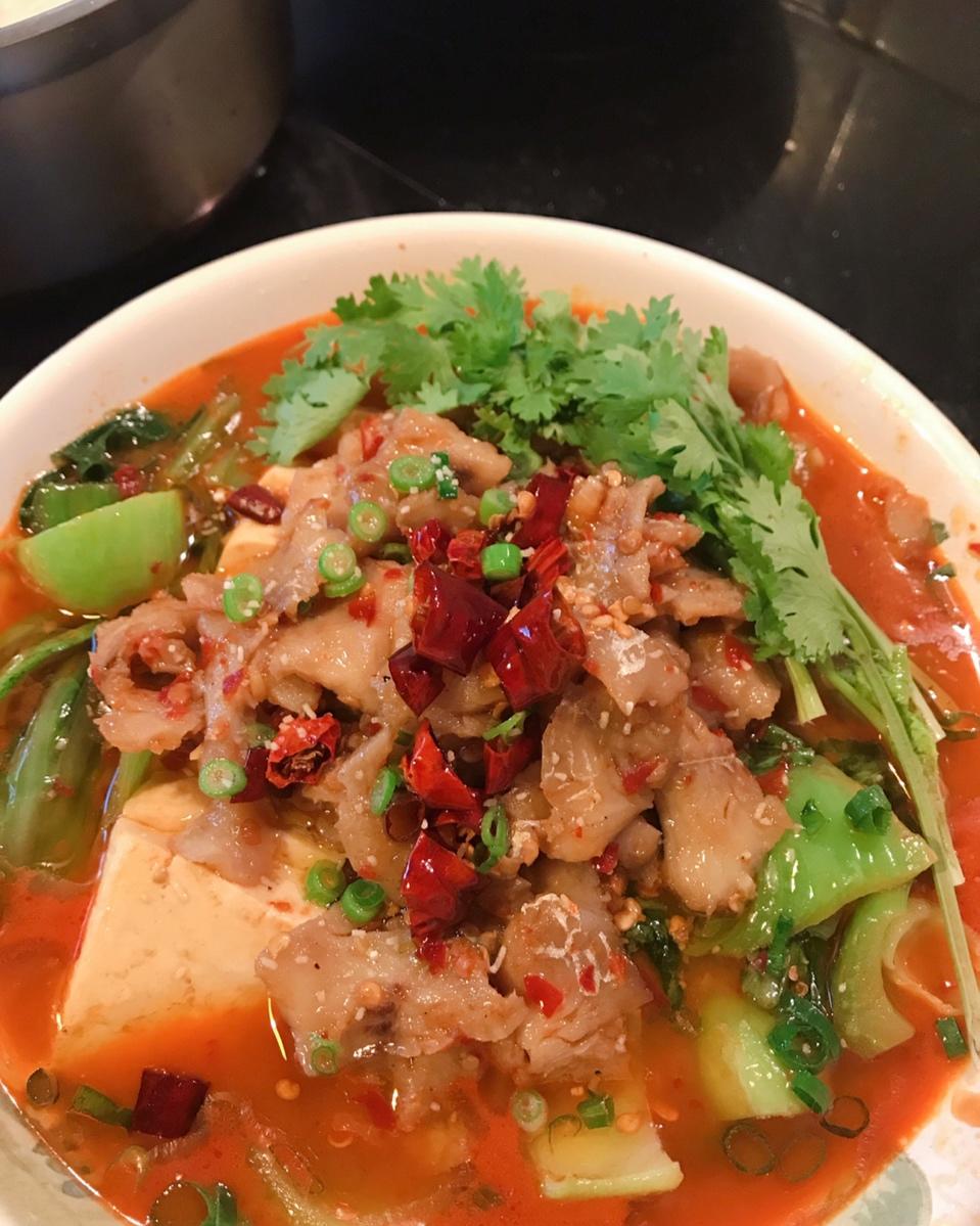 水煮鱼片,垫底的是豆腐和芥菜