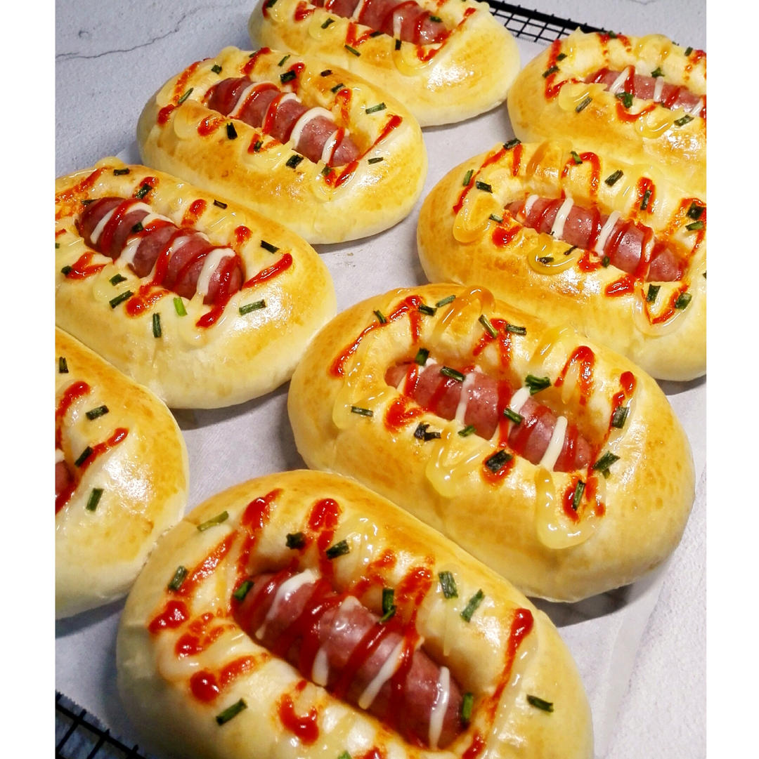 配上自制的脆皮肠做了八个肠仔包,可以一口气吃两个哦!