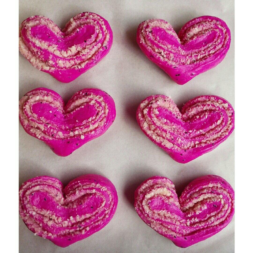 心形火龙果椰蓉面包