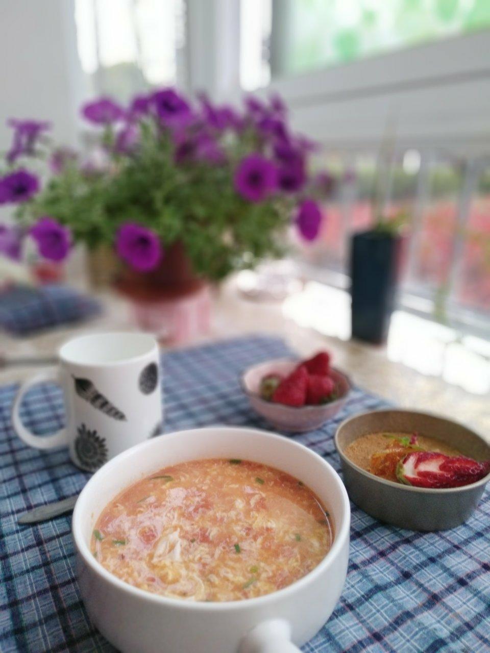 番茄年糕汤,豆乳布丁。