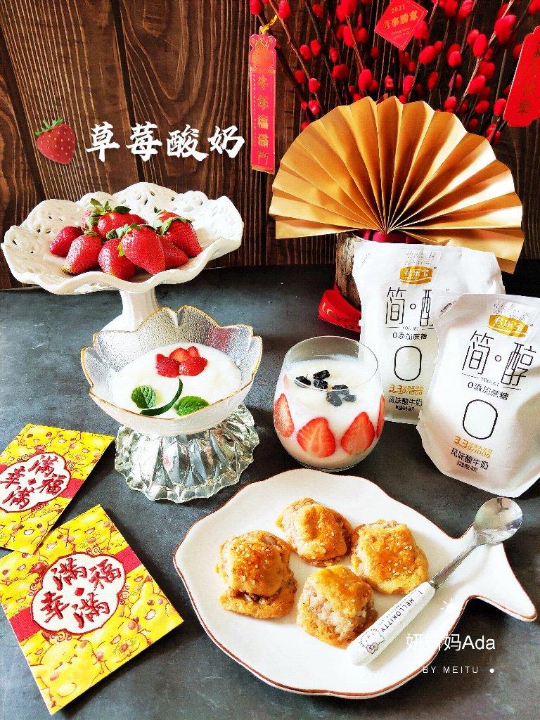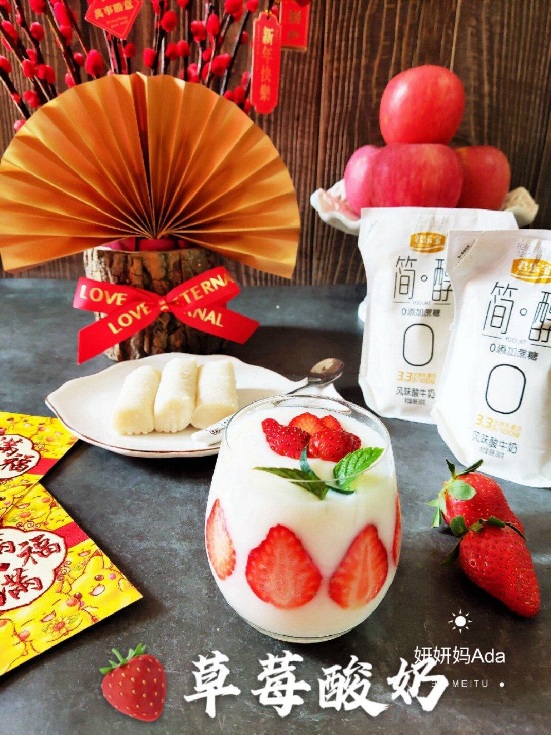 简单醇美一朝一食,选用简醇0蔗糖酸奶搭草莓🍓低脂健康又美味👍