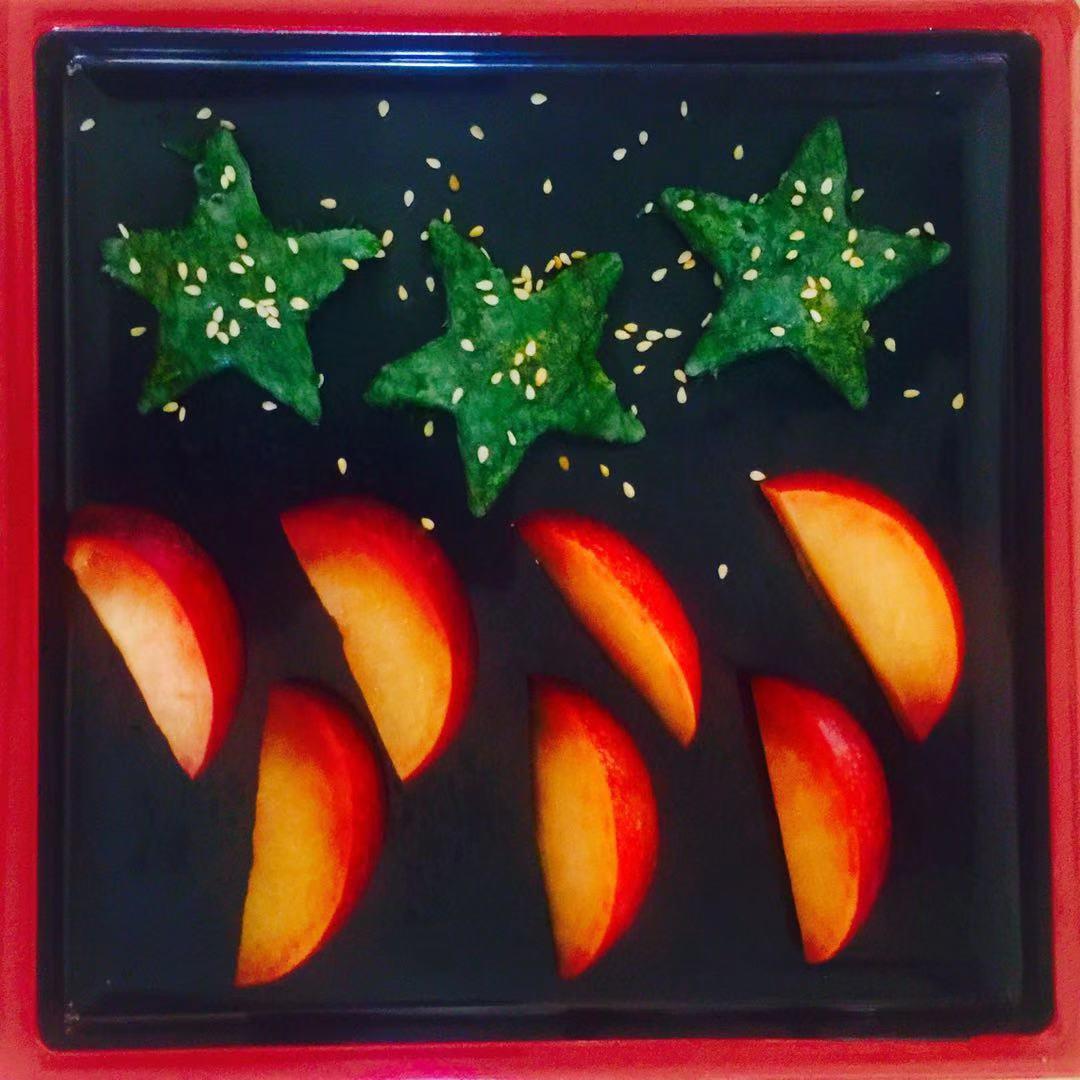 苔条饼配桃子。